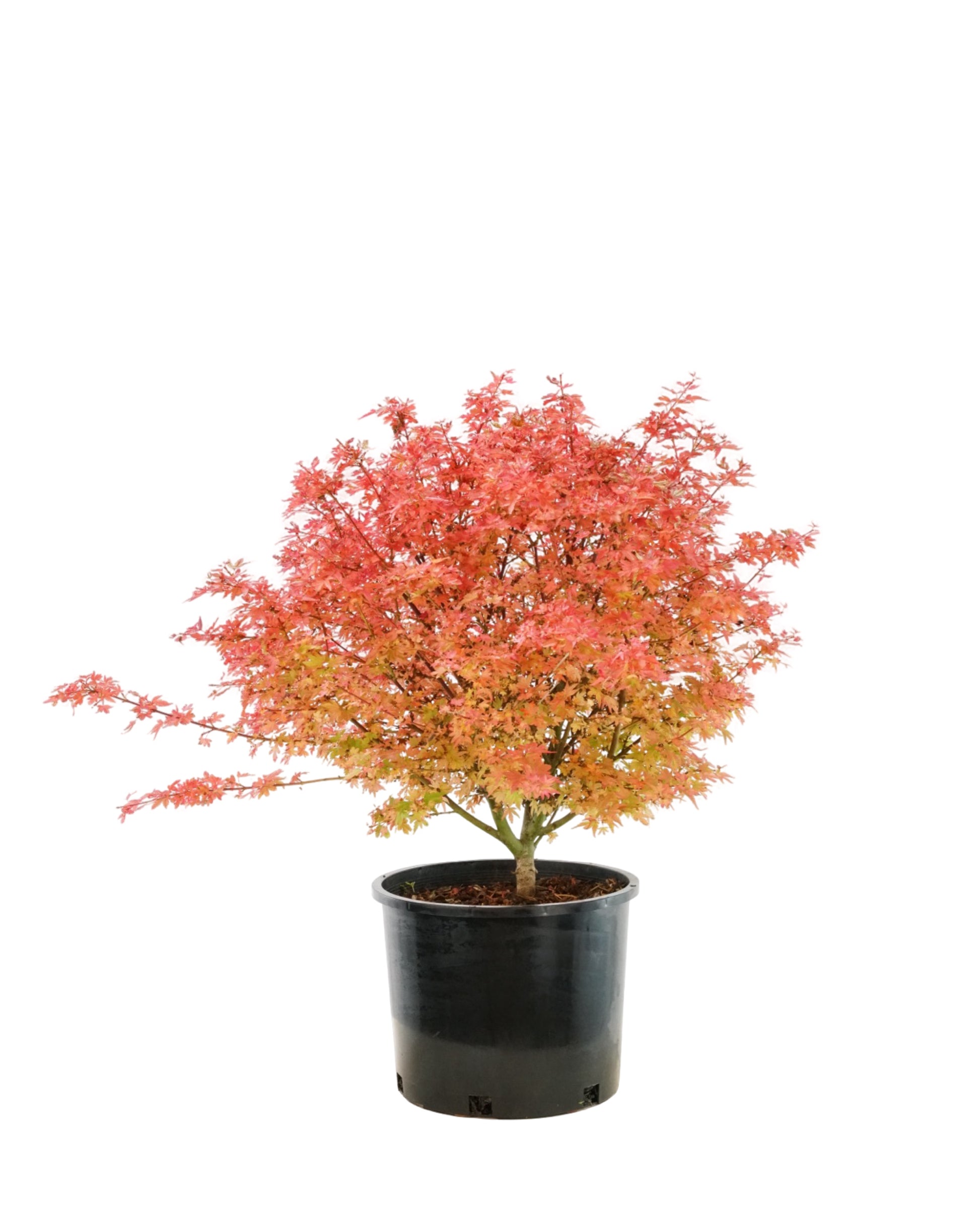 New growth emerges a yellow-green shade with bright pink to red borders, then mellows to a solid green for the summer. Fall brings out brilliant autumn colors on this compact dwarf Japanese maple.