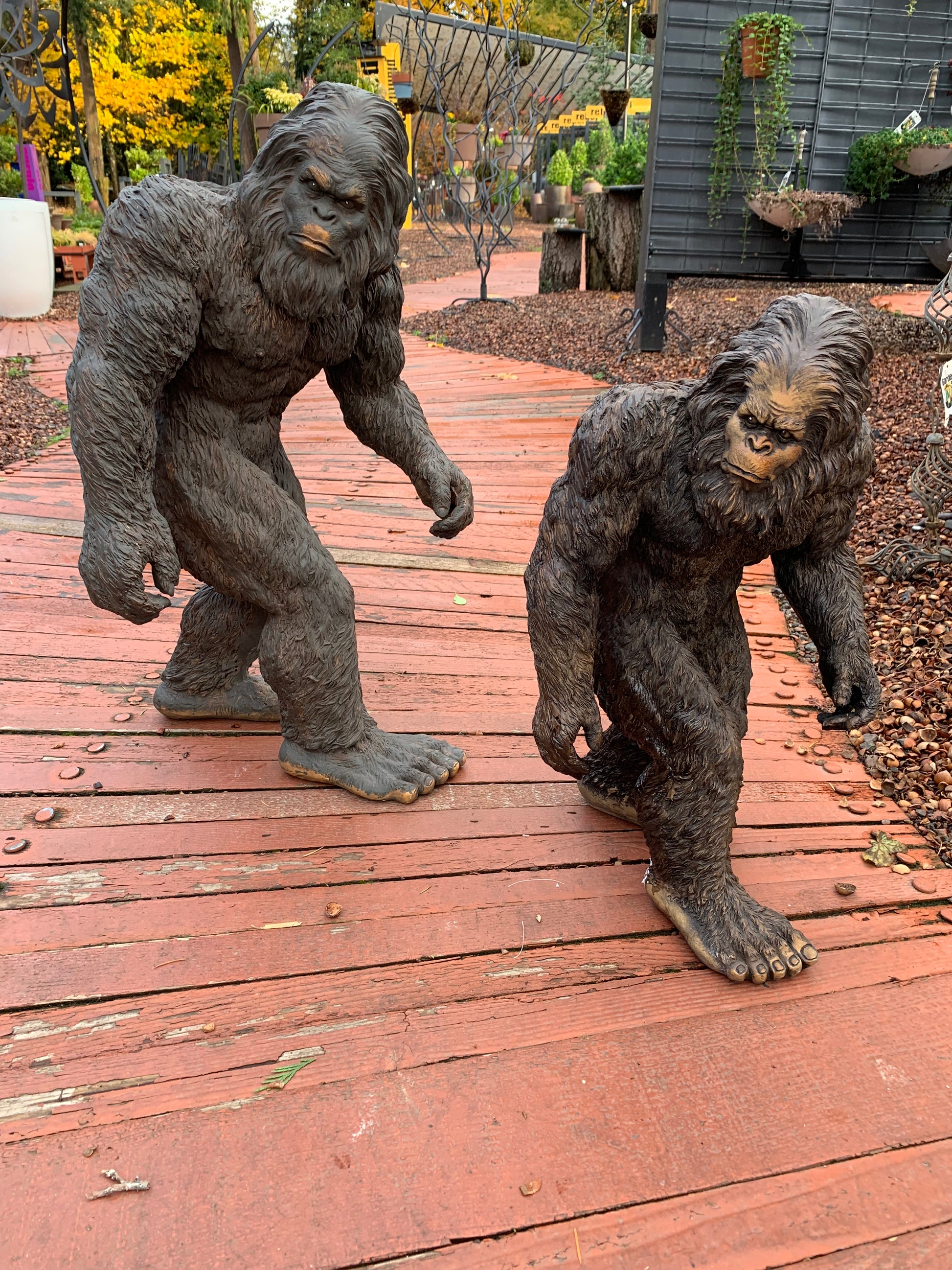Size: 21" tall Sasquatch 15-1/2" wide, 12" deep. 28" tall Sasquatch 19-1/2" wide, 16" deep. Lifesize Sasquatch 71-1/2" tall, 45" wide, 38" deep.