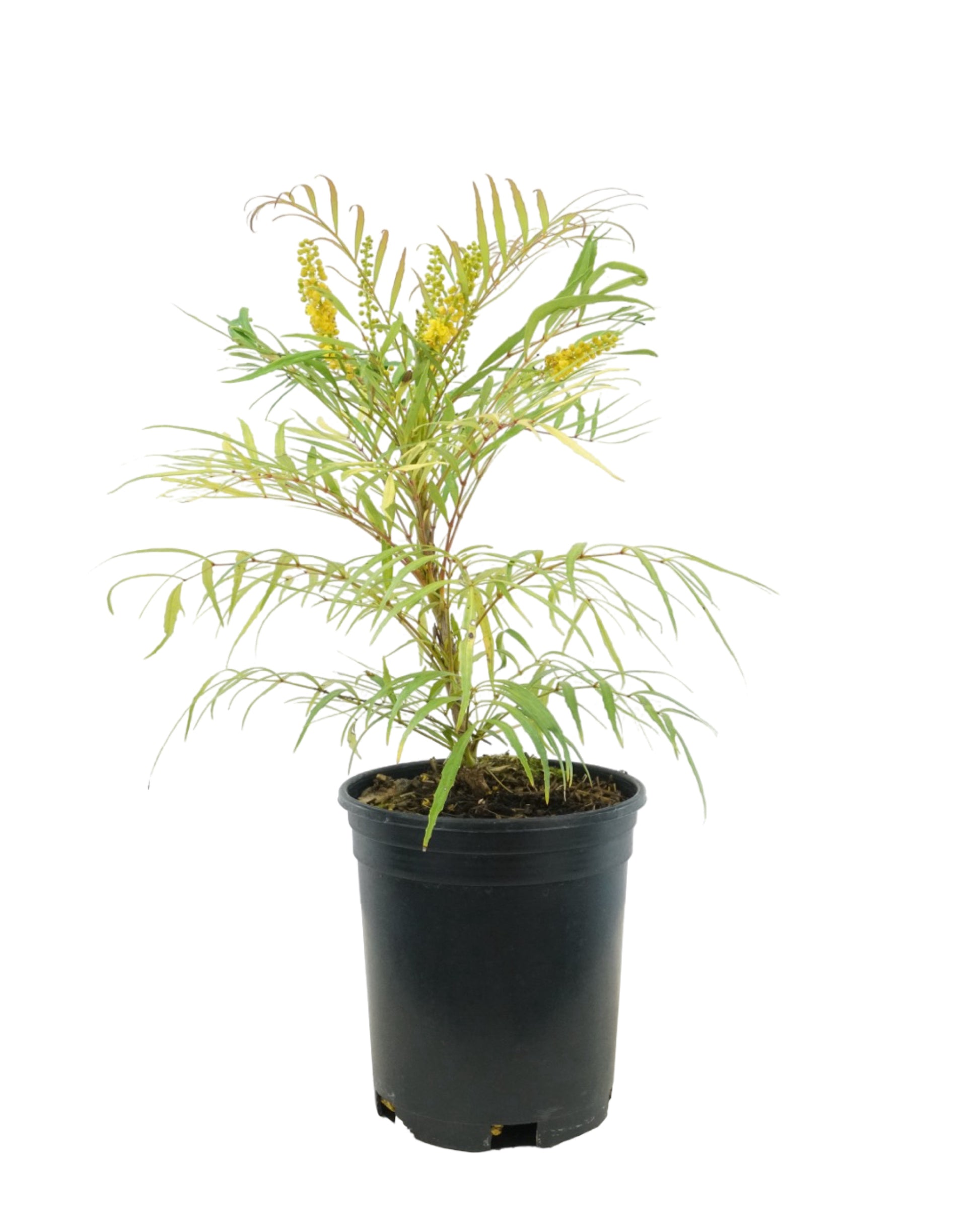Unlike its prickly cousins, this mahonia has soft feathery leaflets that flourish in shadier spots of the garden, with yellow flower spikes appearing in the fall and winter.